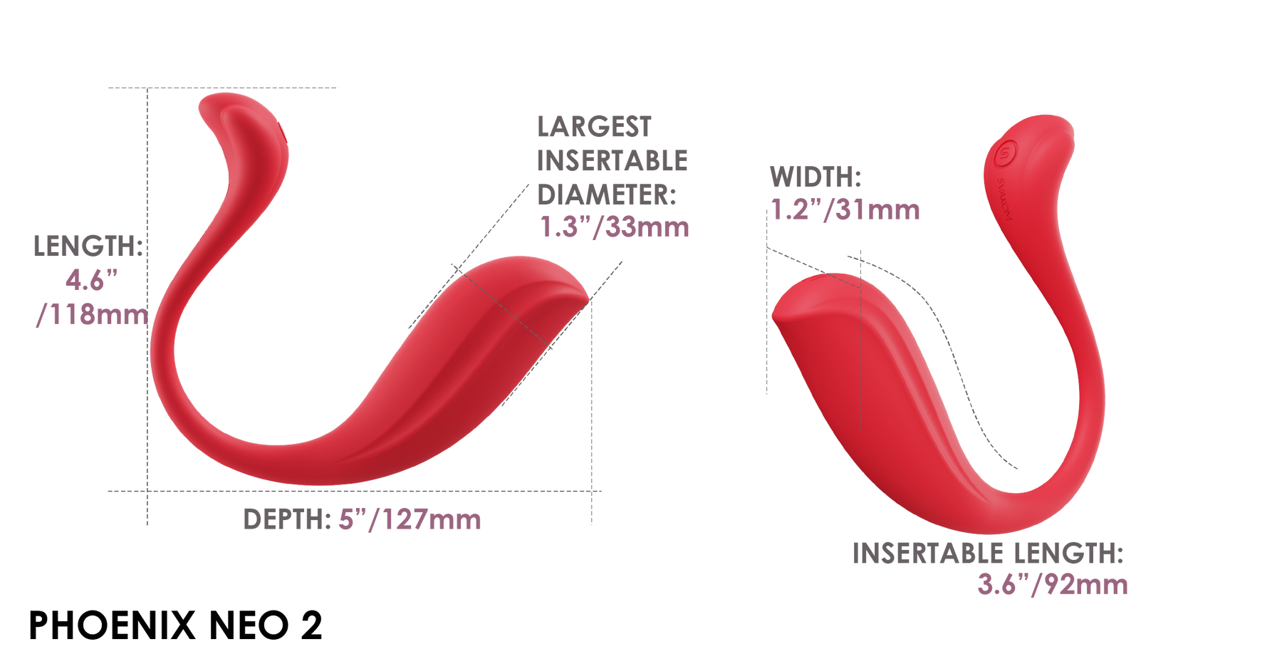 The textured body of the Phoenix Neo 2 enhances both comfort and pleasure. With its unique curved design, every touch and movement will ignite your erotic senses, leading to an unforgettable experience.