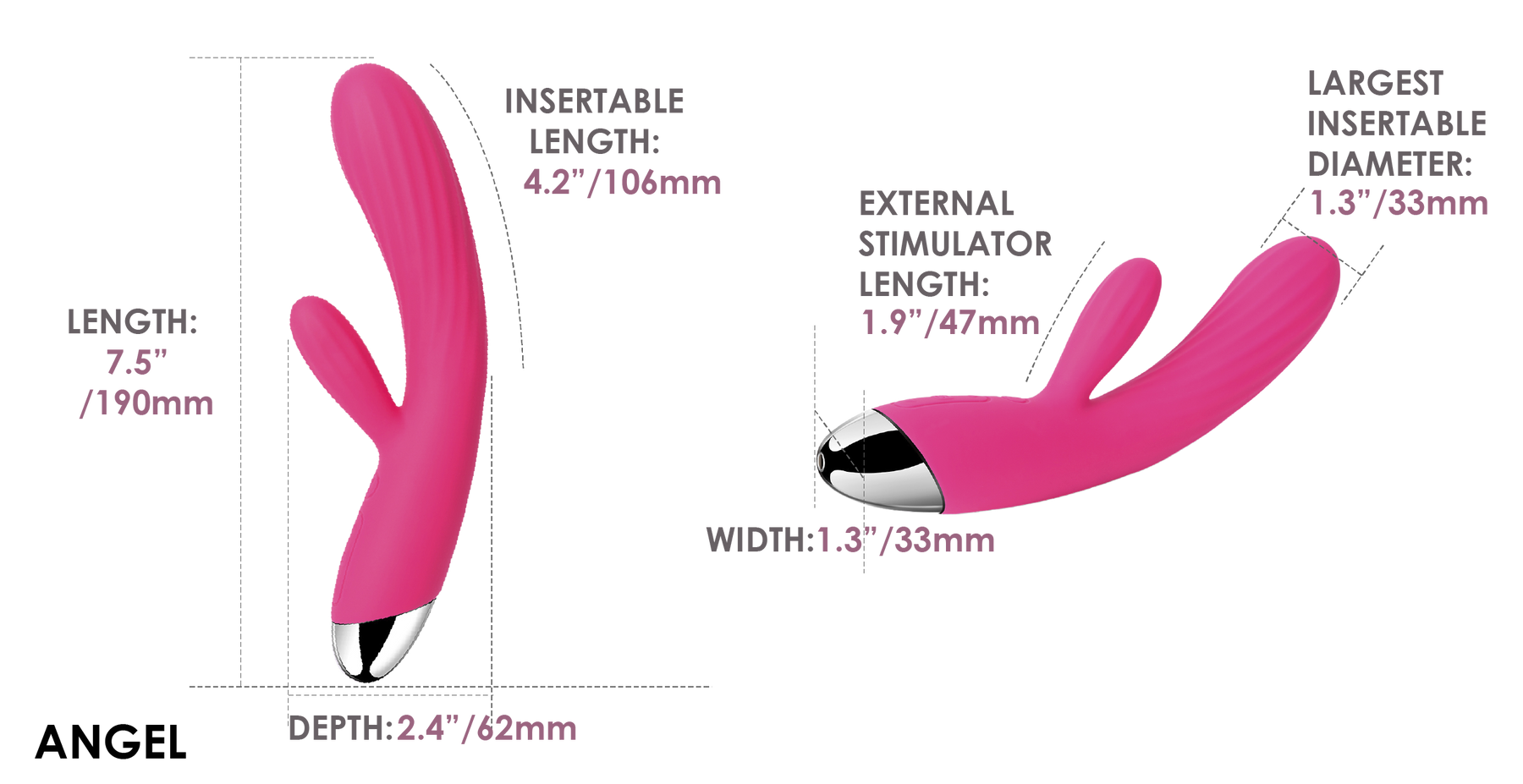 Angel offers extended usage time up to 3 hour that you can enjoy longer sessions without worrying about battery life. The discreet charging port ensures the device maintains its sleek design and waterproof feature.